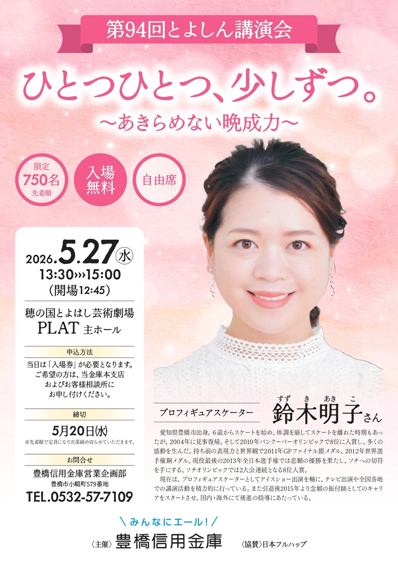 当金庫は、下記日程にて「第94回とよしん講演会」を開催いたします。